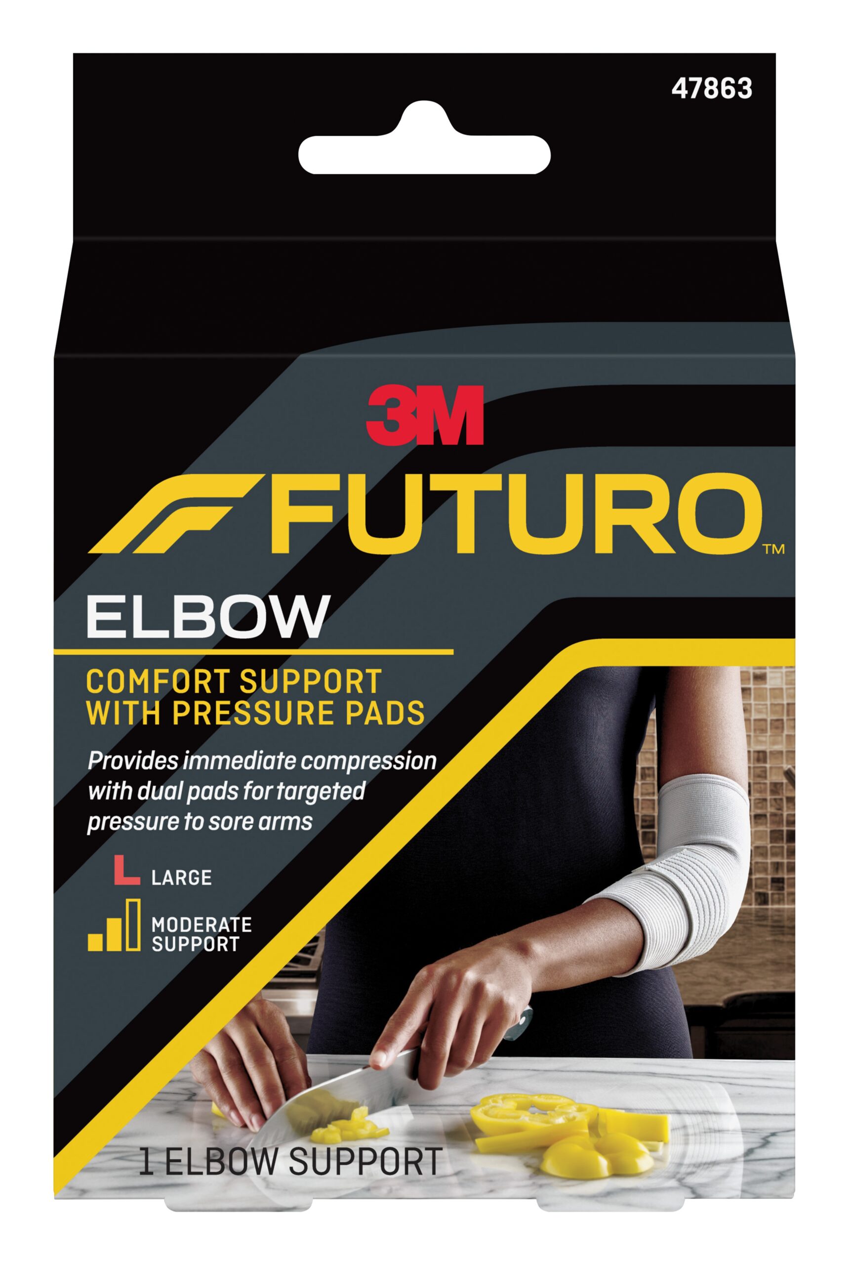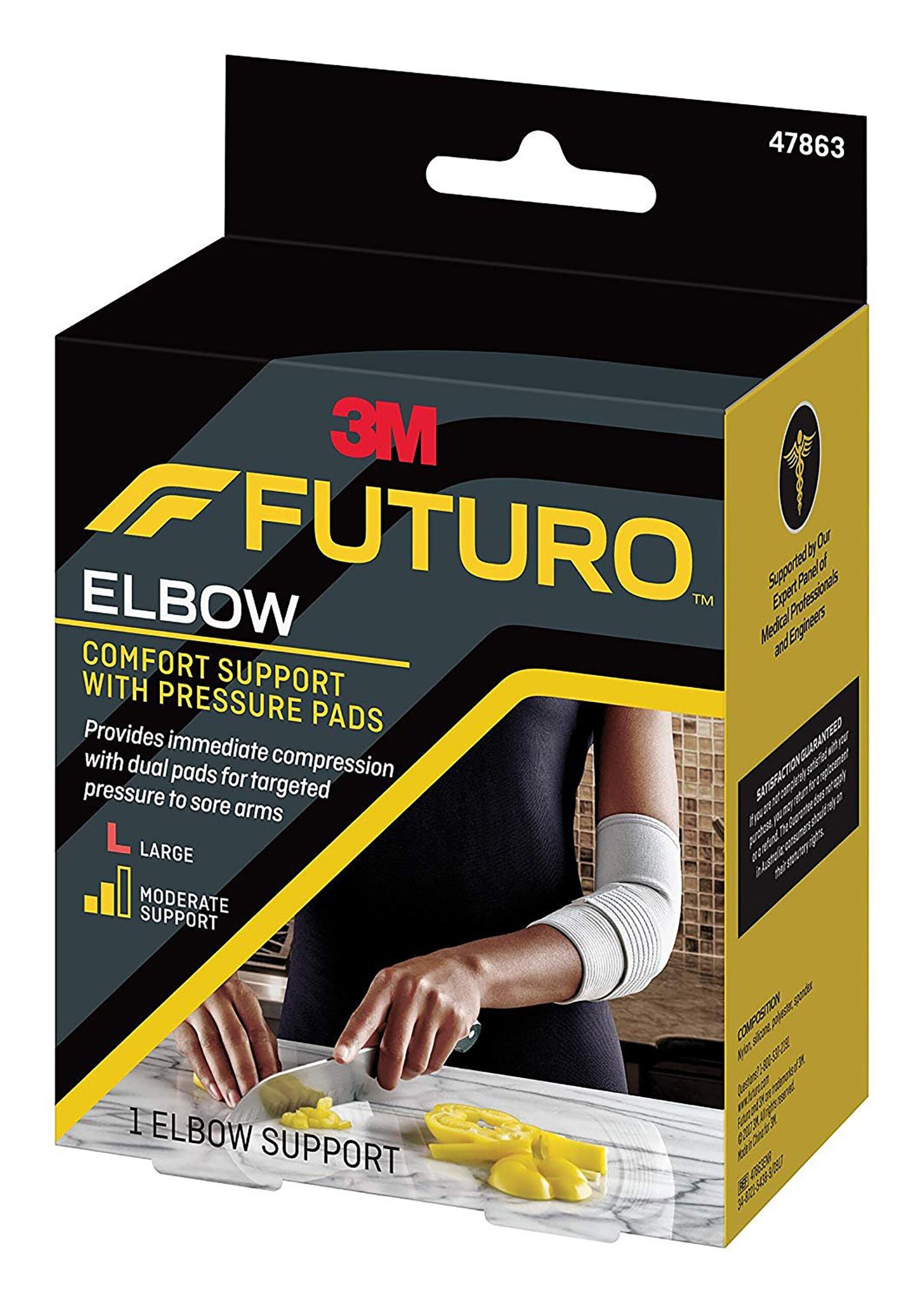 Elbow Support with Pressure Pads 3M™ Futuro™ Large Pull-On / Hook and Loop Strap Closure Sleeve Left or Right Elbow 11 to 12 Inch Elbow Circumference Gray