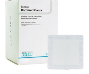 Adhesive Dressing DermaRite® Bordered Gauze 4 X 8 Inch Rectangle Sterile