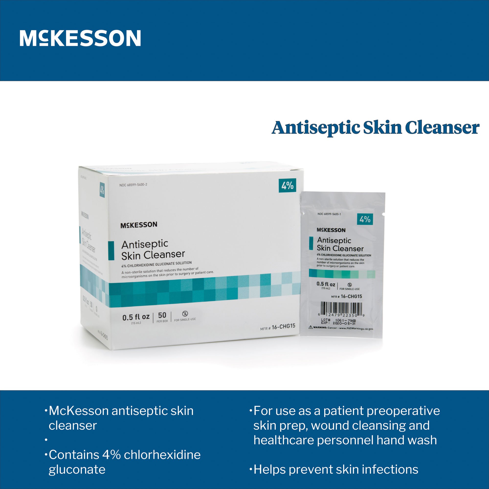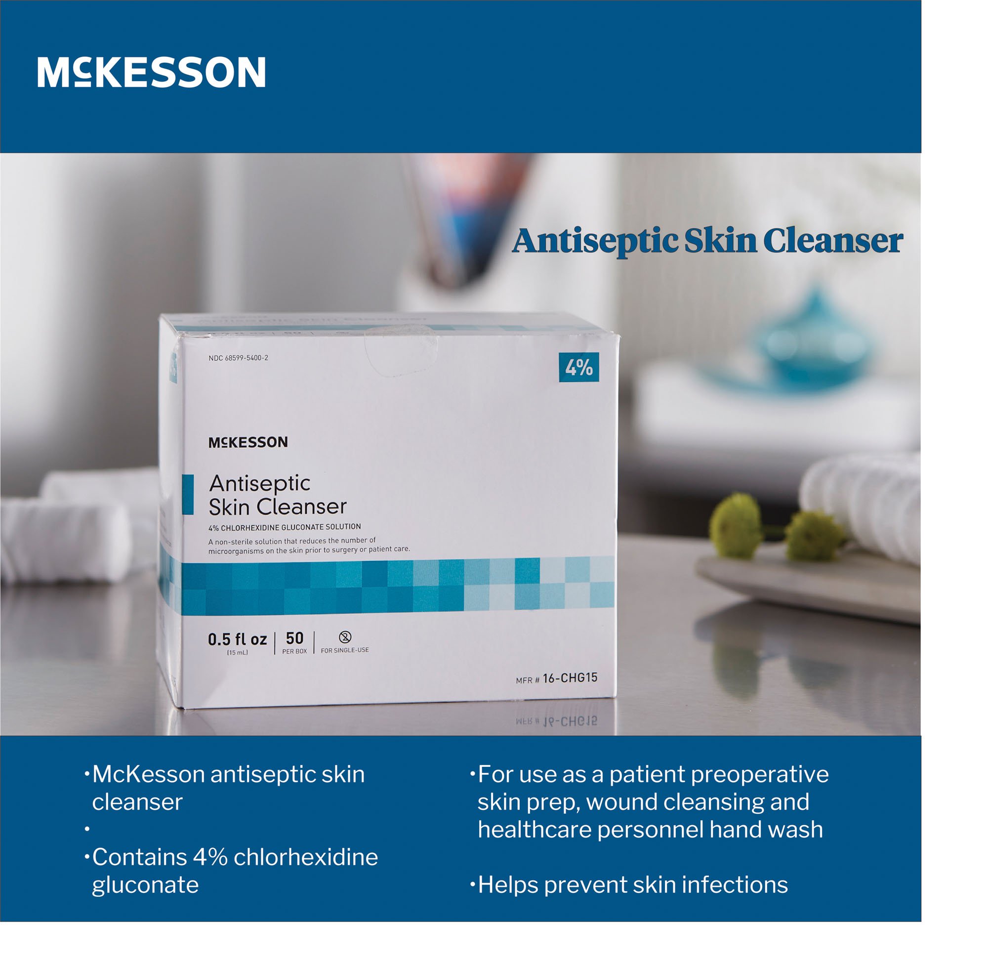 - Contains 4% Chlorhexidine Gluconate