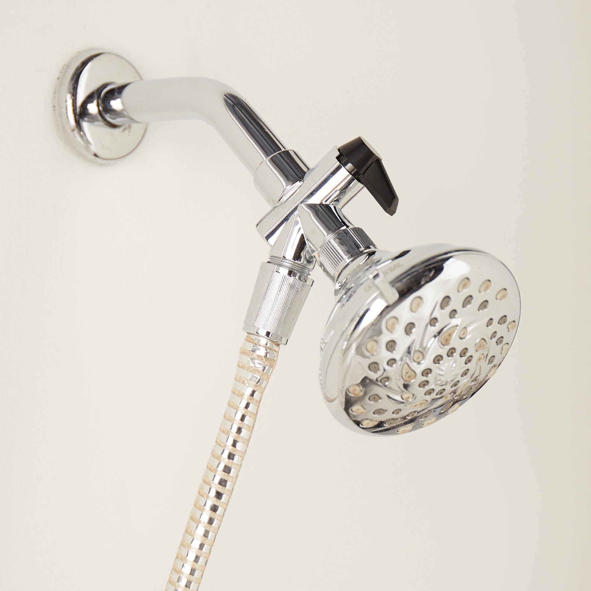 - Works with most handheld shower sprays