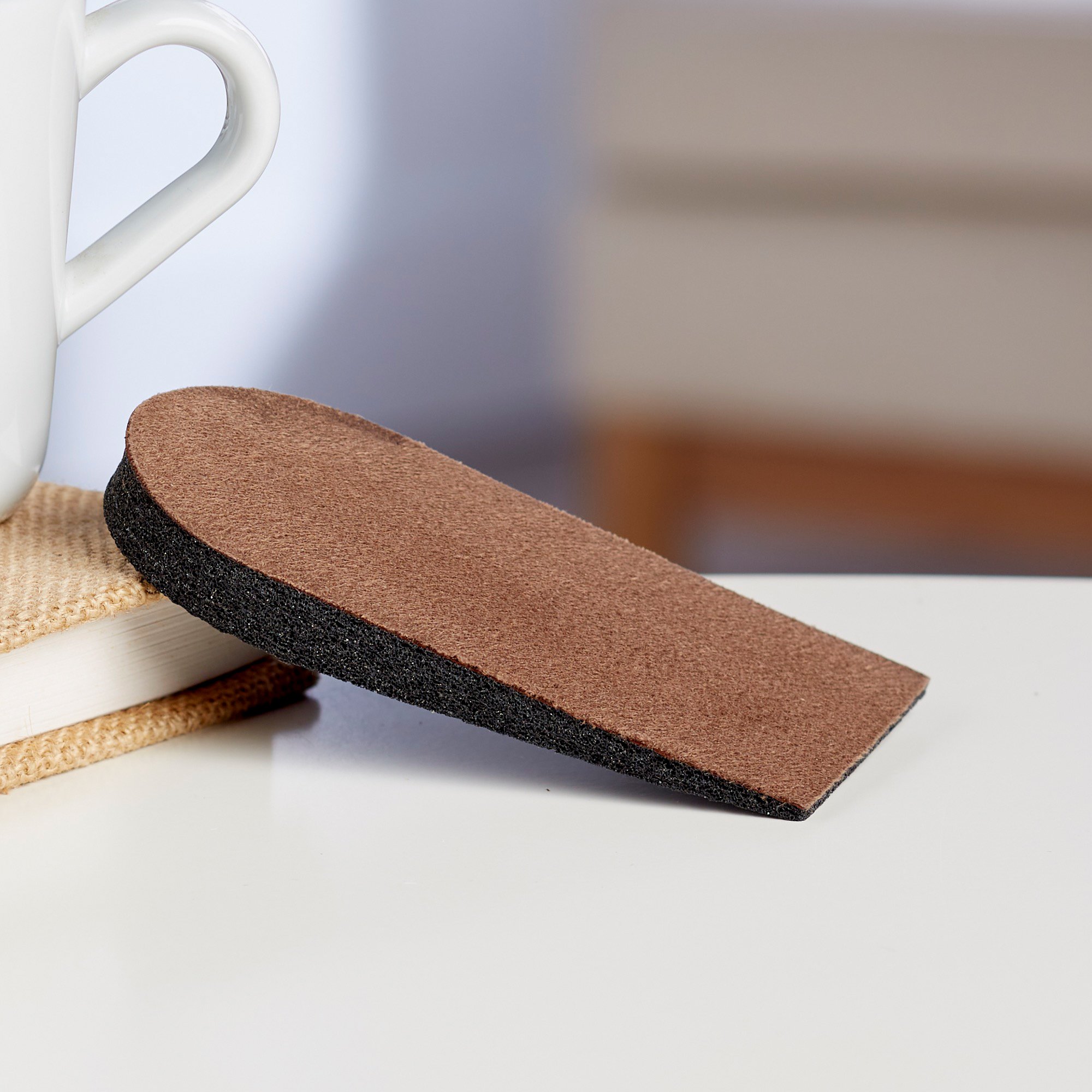 - Small heel lift fits those who wear men’s shoes, size 4 – 5, or women’s shoes, size 5 – 6