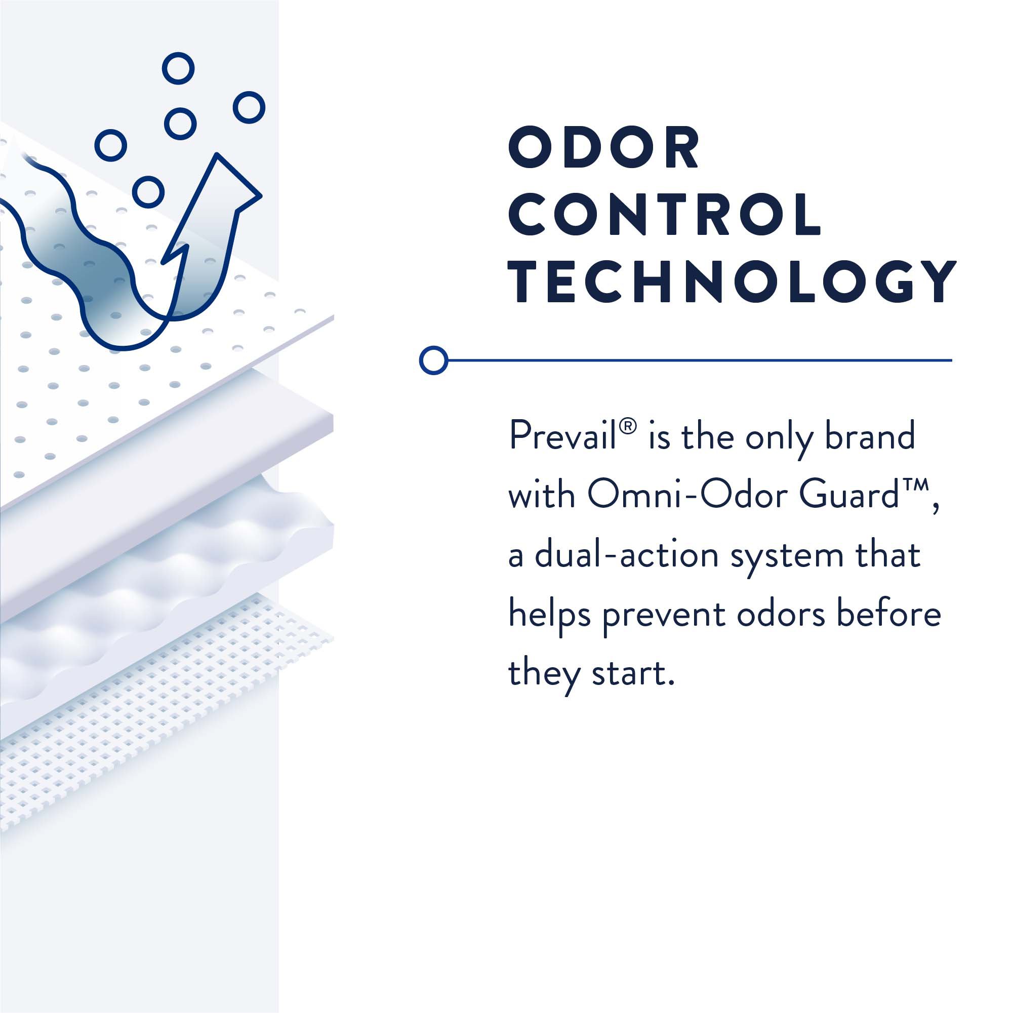 • Only Prevail® has Omni-Odor Guard™, a dual action system to help prevent odors before they start