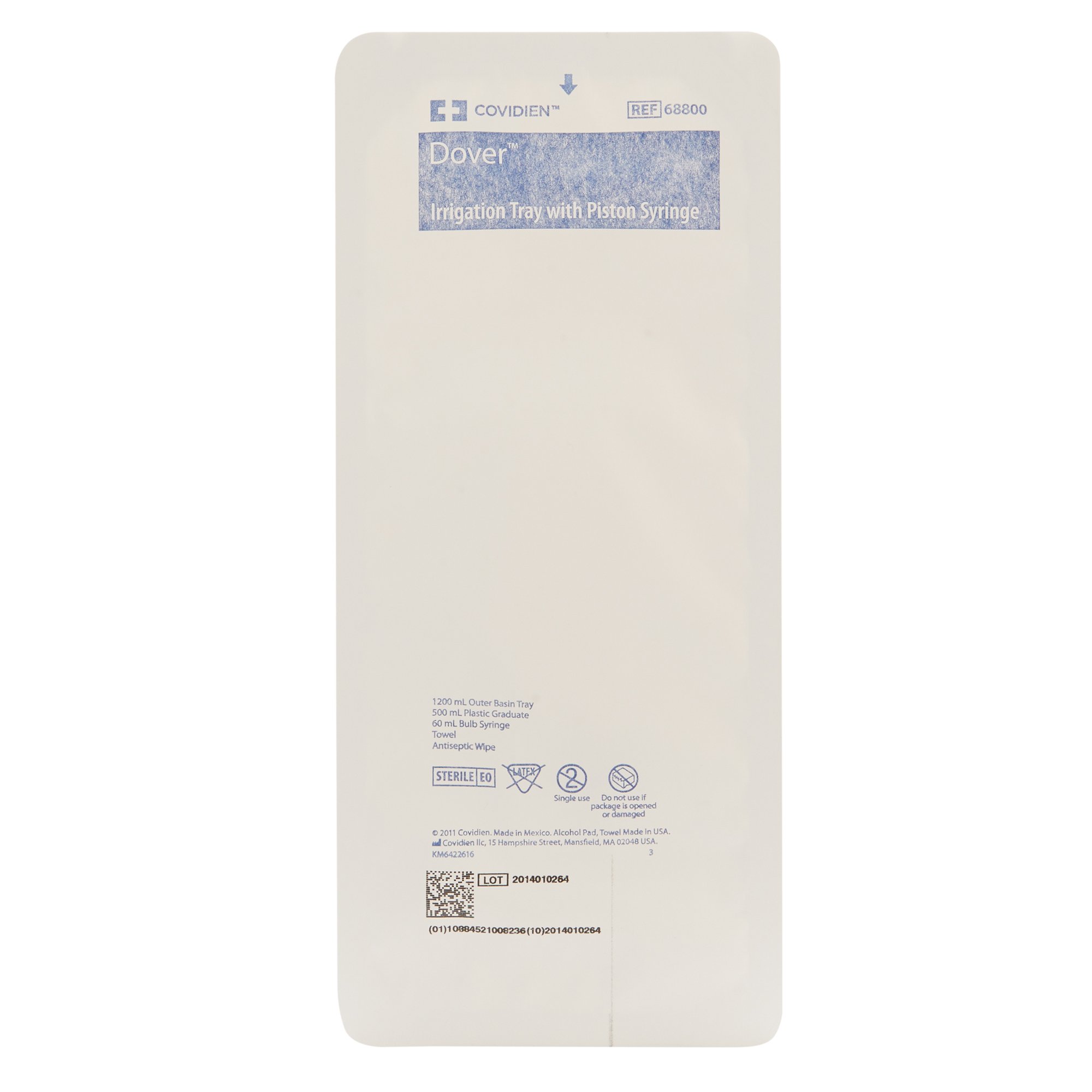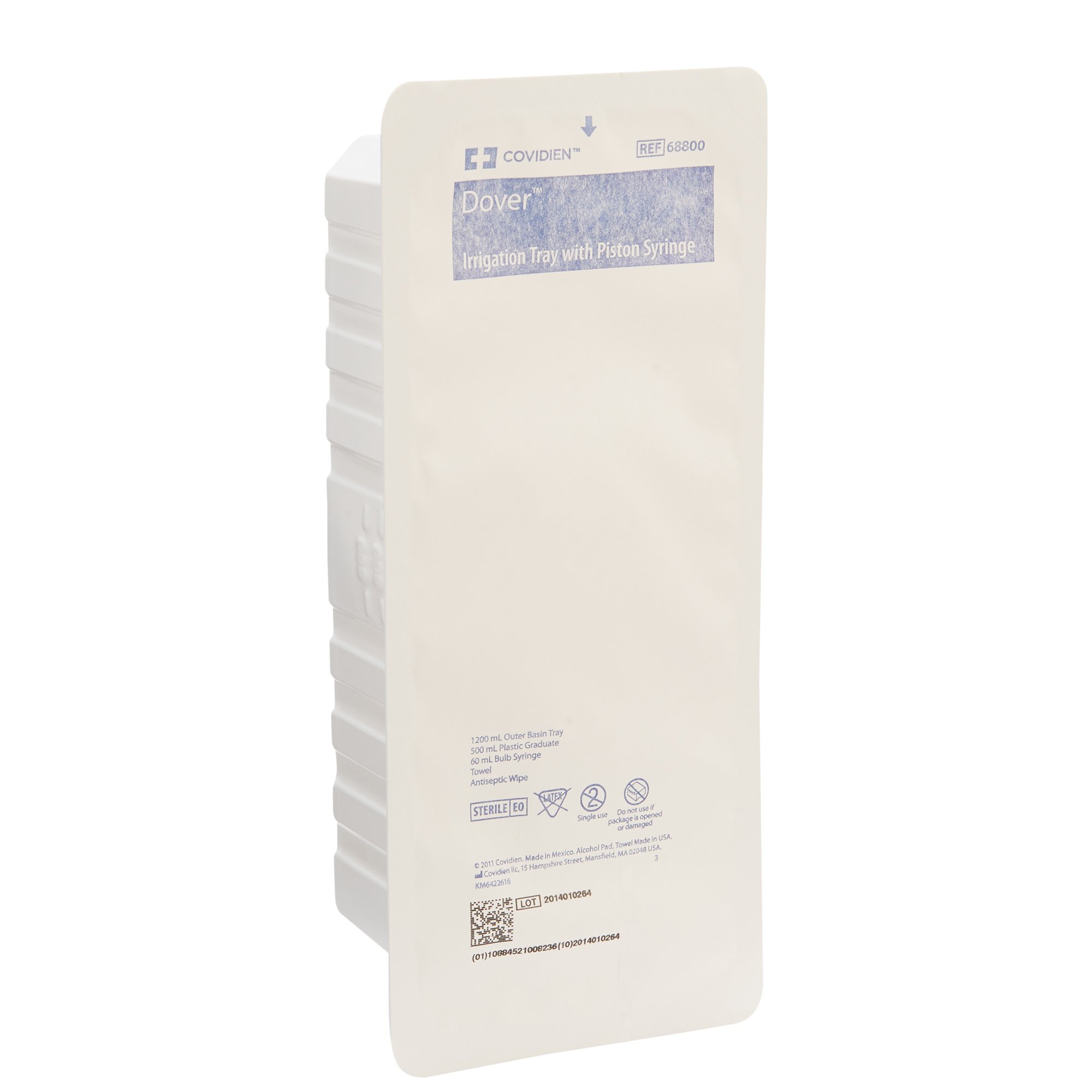 | Contents | 60 mL Syringe, 1200 cc tray with lid, 500 cc graduate, waterproof drape, protector cap |